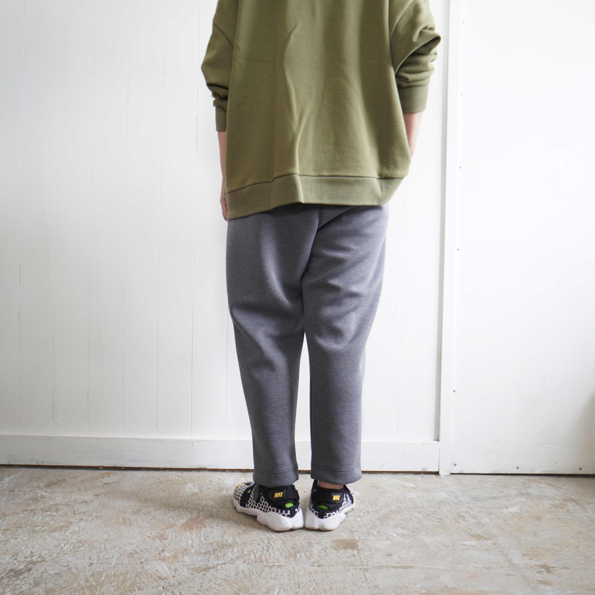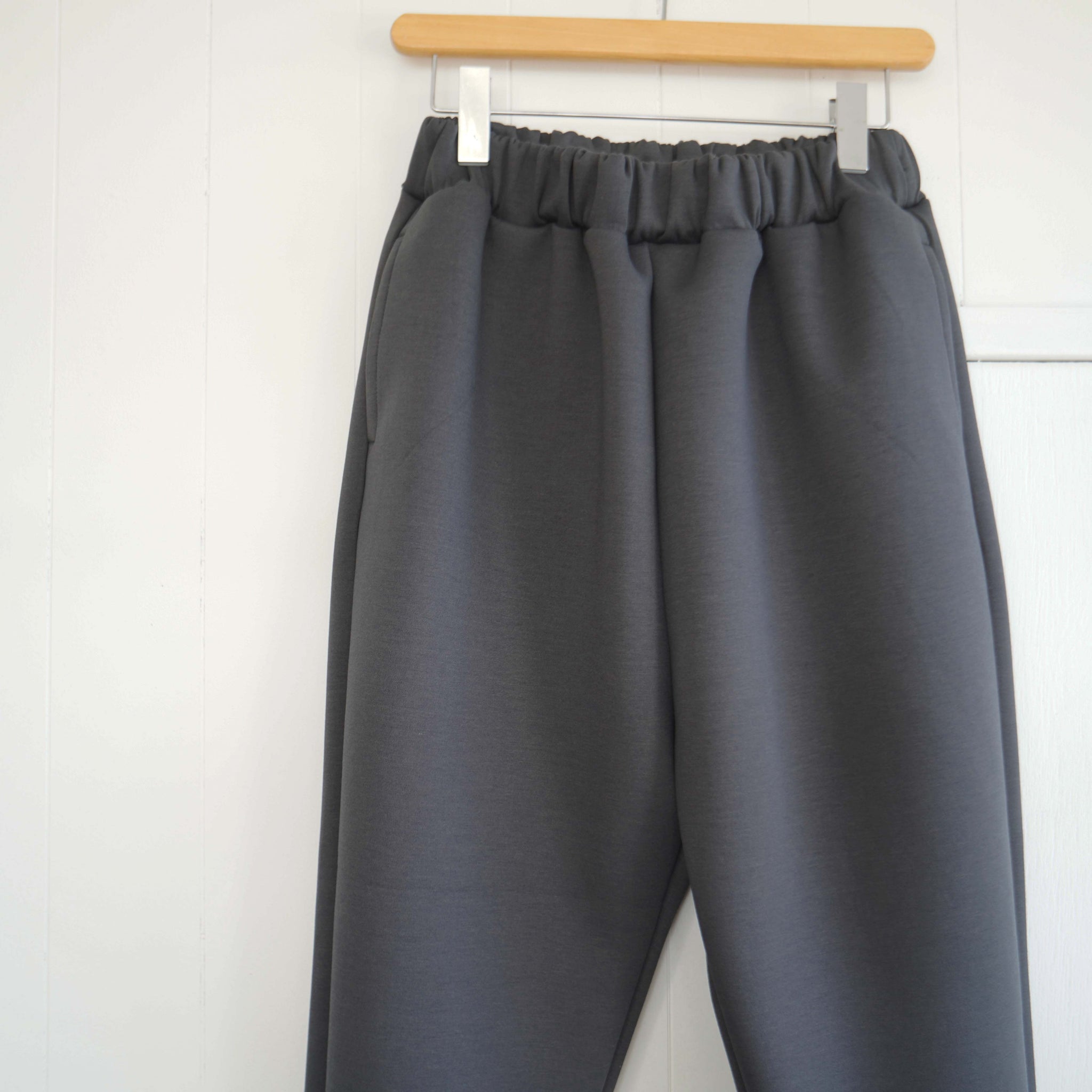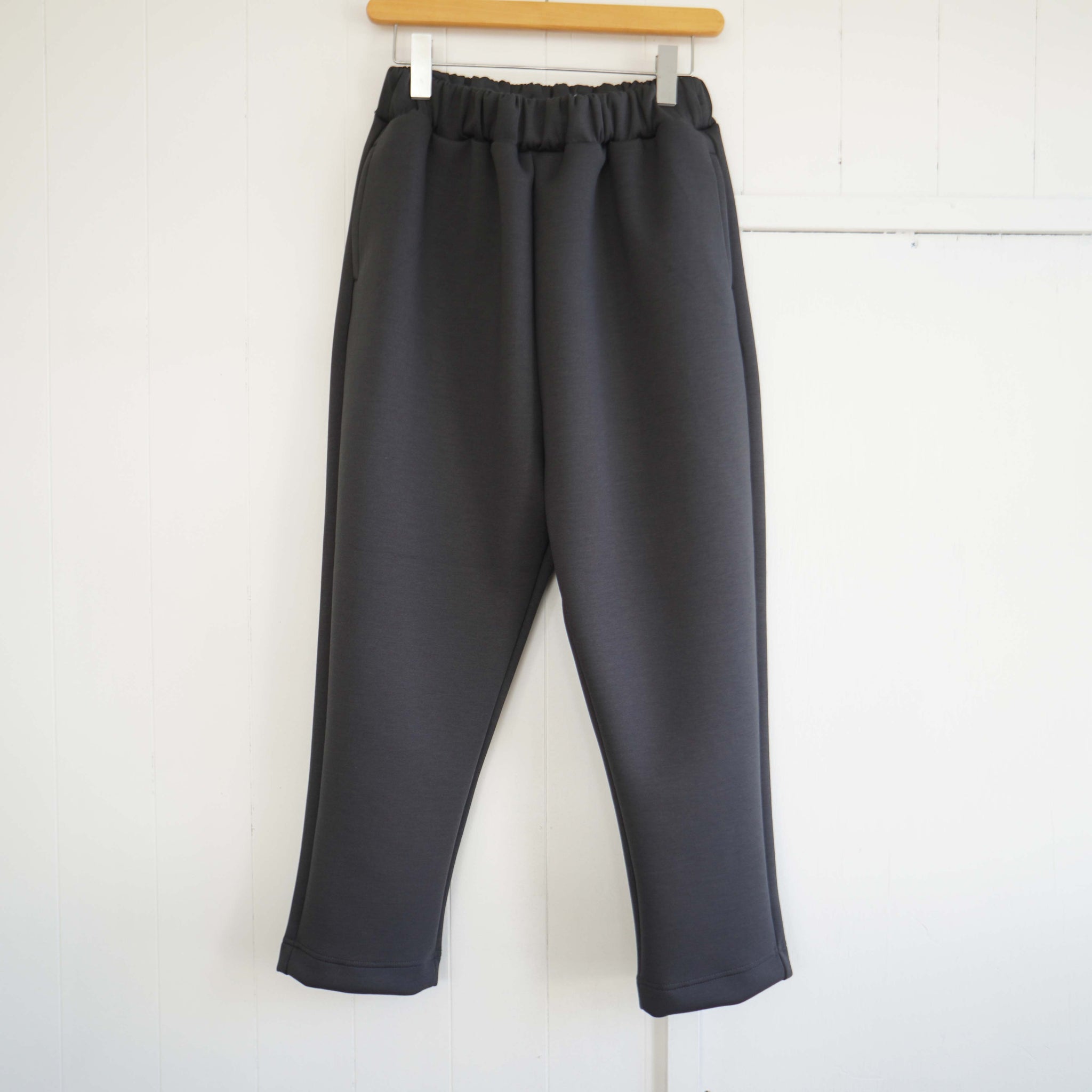 股上が深くゆったりした腰回りからスッキリとテーパードシルエットのクロップドパンツです。