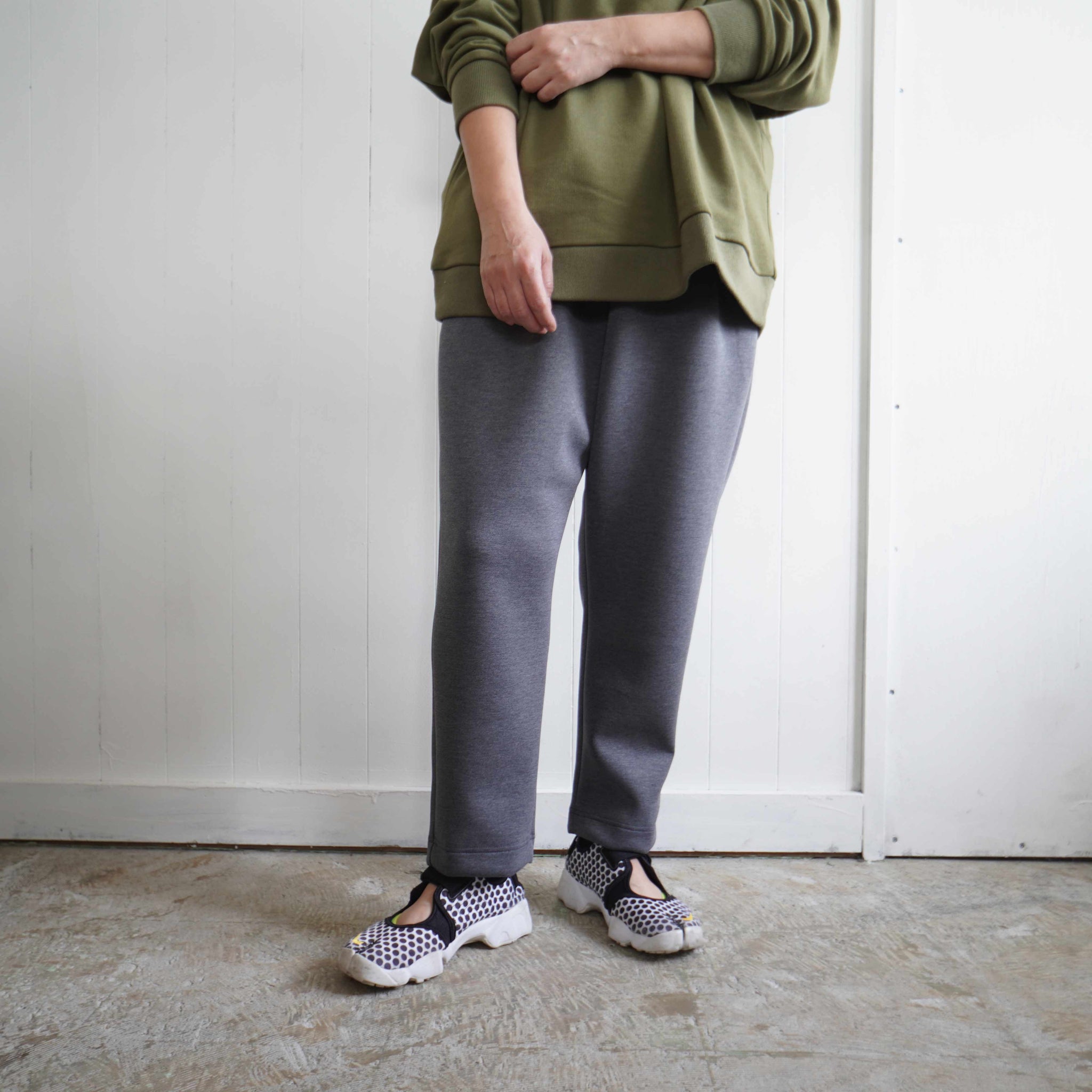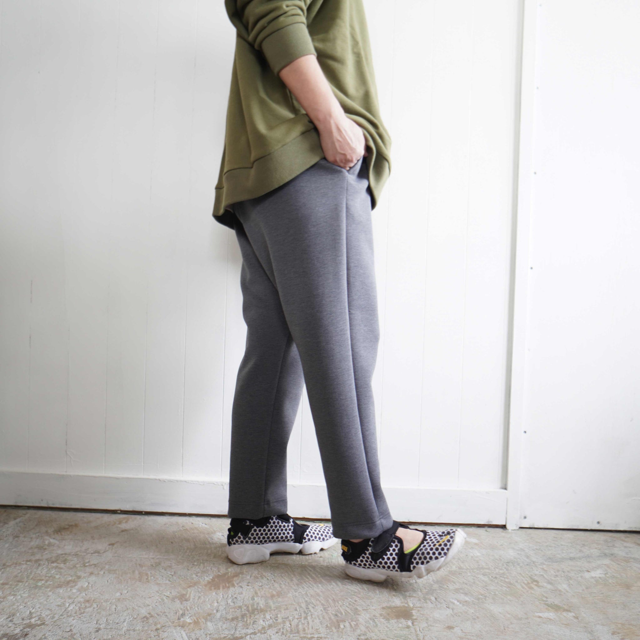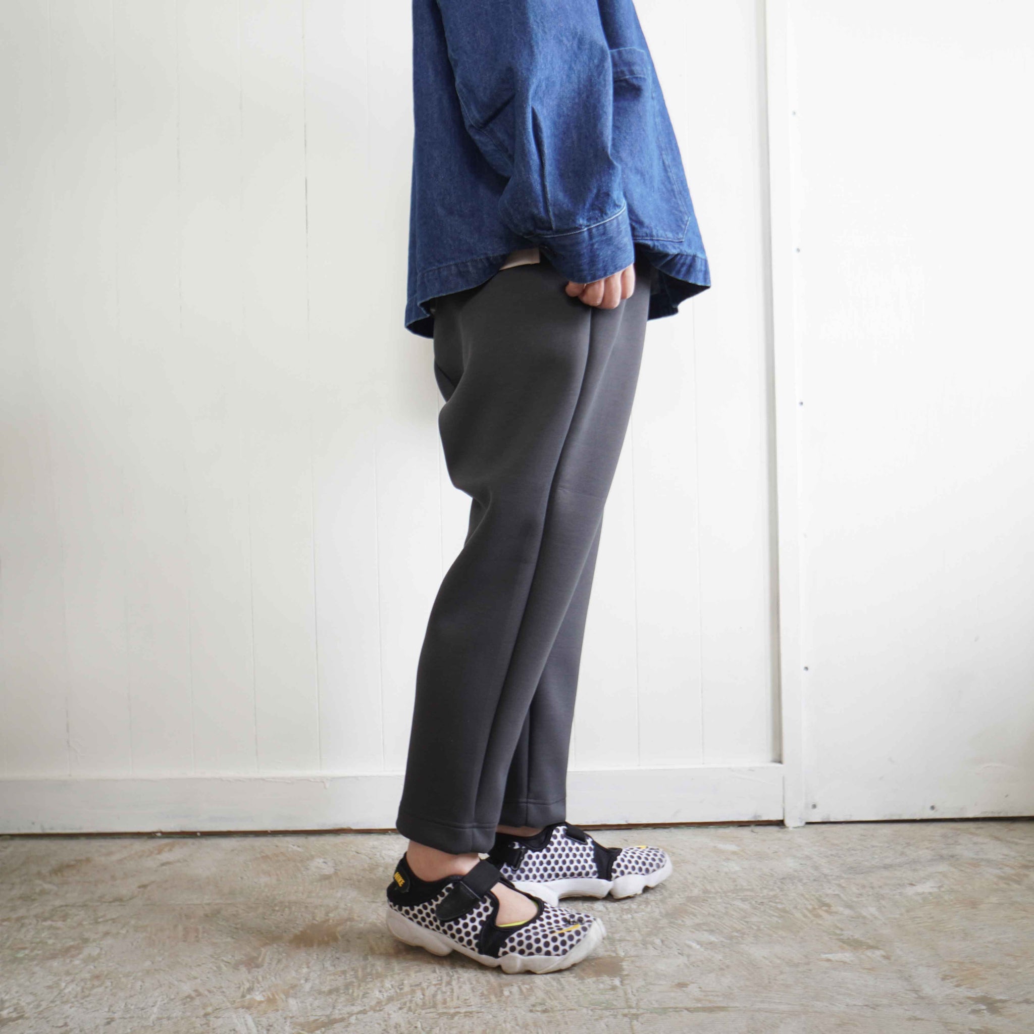 股上が深くゆったりした腰回りからスッキリとテーパードシルエットのクロップドパンツです。